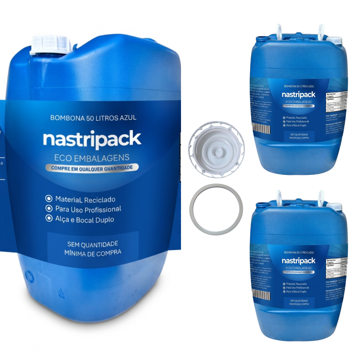 A bombona 50 litros azul reciclada é uma embalagem industrial robusta, funcional e sustentável, projetada para armazenamento e transporte seguro de líquidos não alimentícios, como óleos, químicos e insumos. Ideal para profissionais de indústrias, agricultura e logística que buscam durabilidade, vedação premium e design ergonômico sem quantidade mínima de pedido e com pronta entrega pela Nastripack.